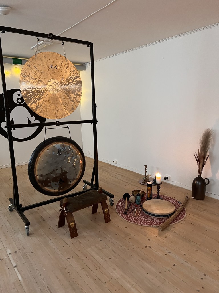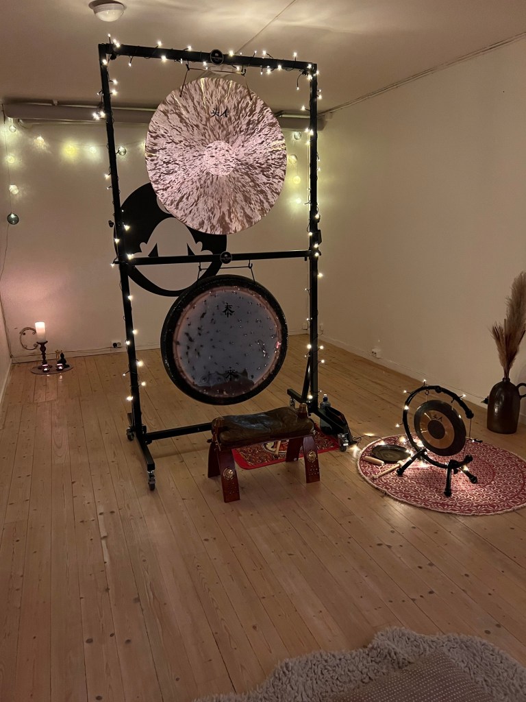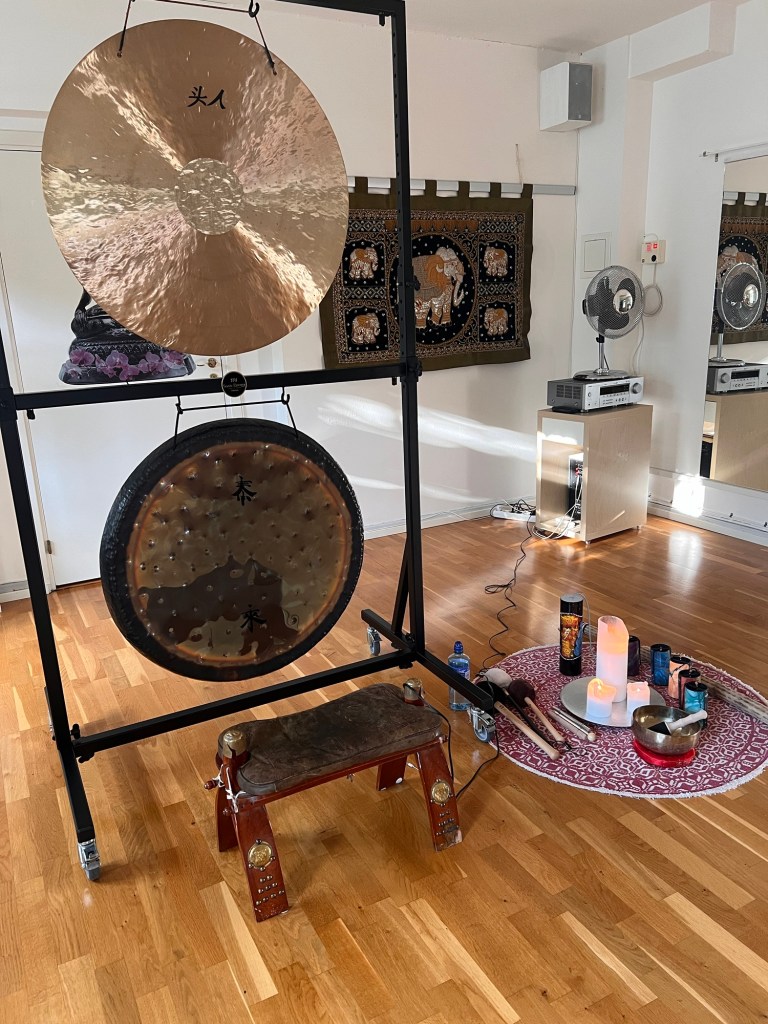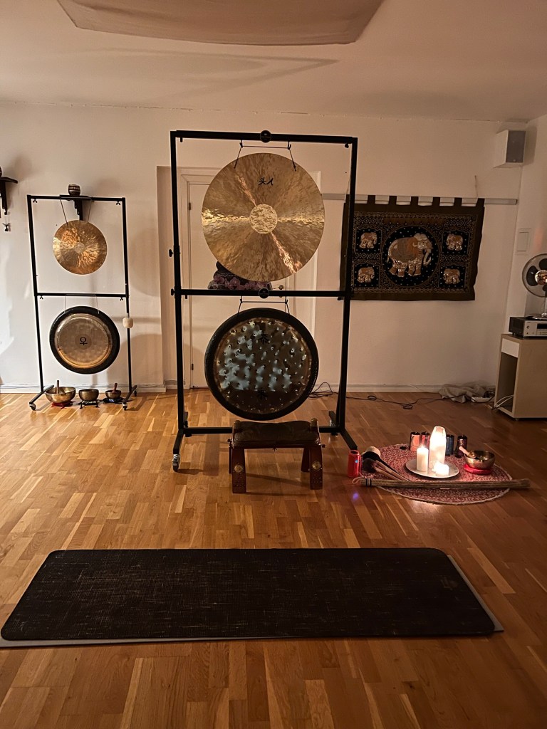 Vibrationerna och ljuden från gongarna kommer att ge behövlig upplyftande energi till både kropp och sinne. Jag mixar min yoga med gongspel och andra instrument.