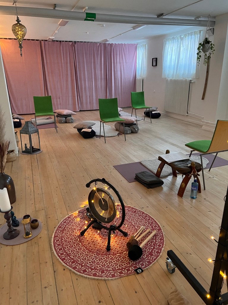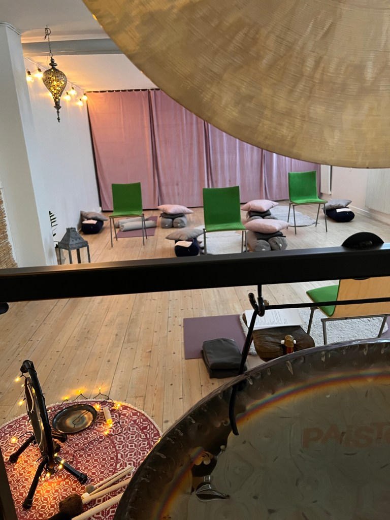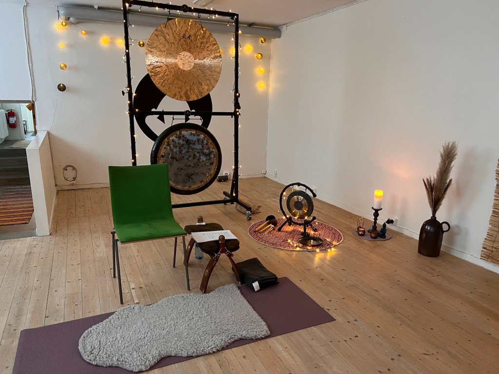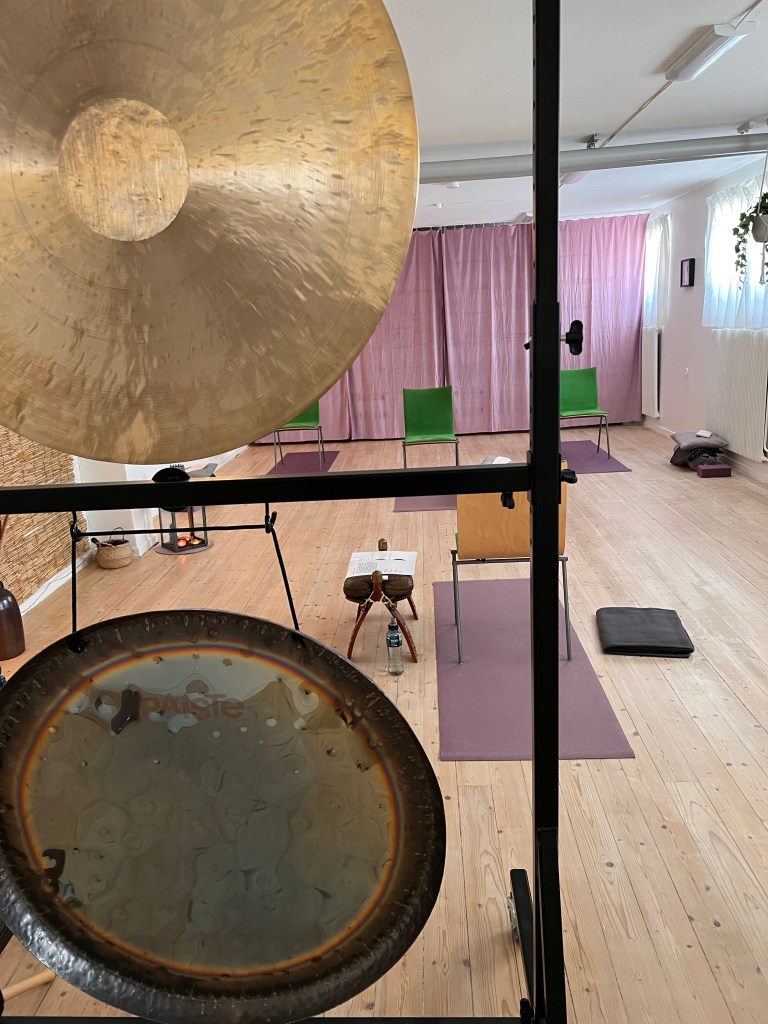 Vibrationerna och ljuden från gongarna kommer att ge behövlig upplyftande energi till både kropp och sinne. Jag mixar min yoga med gongspel och andra instrument.